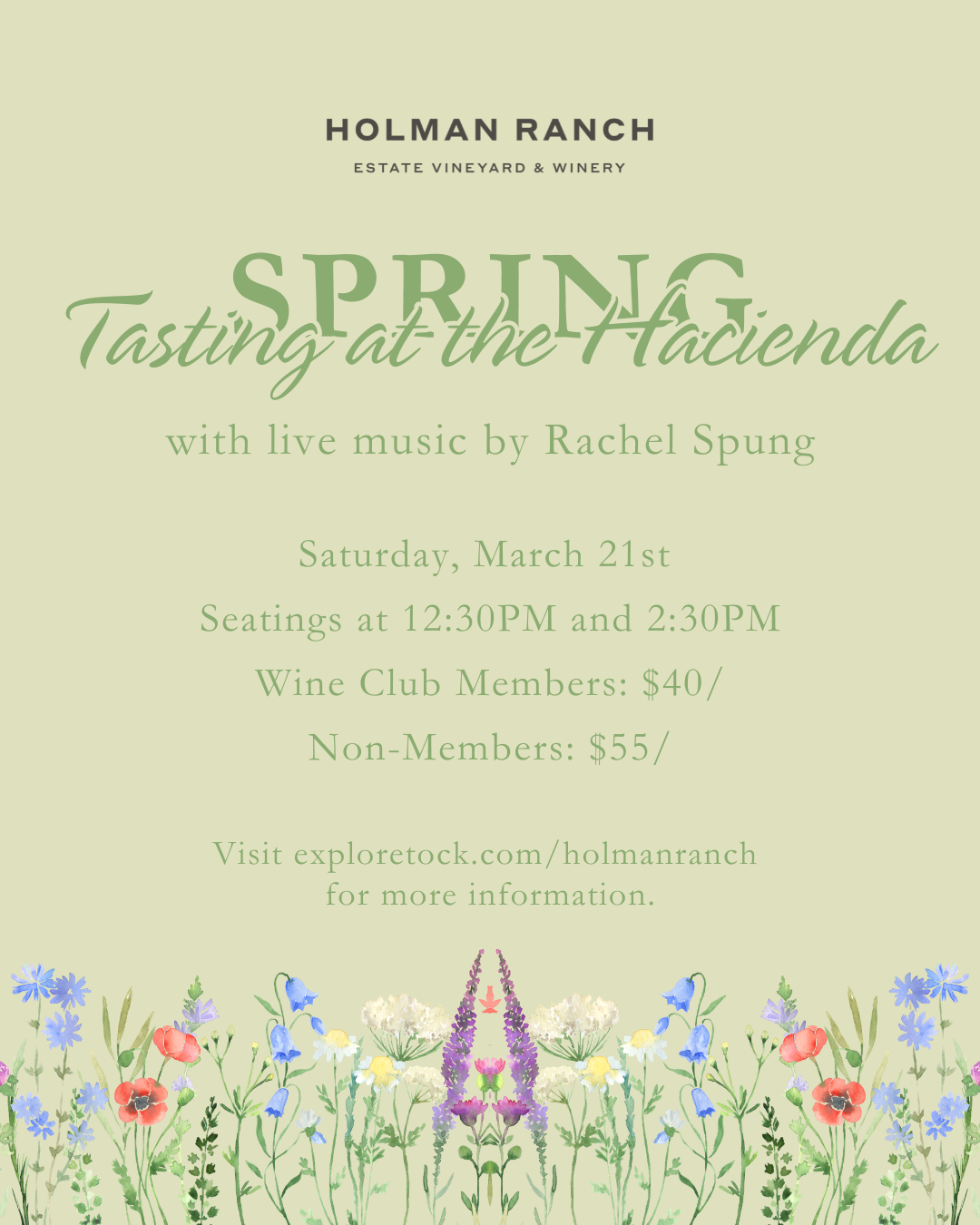 This weekend only, we invite you to join us at the Hacienda for an afternoon soaking up the magic of Holman Ranch! We are offering limited opportunities for intimate seated tastings of four Holman Ranch wines, live music from Rachel Spung, and the availability to linger a little longer.